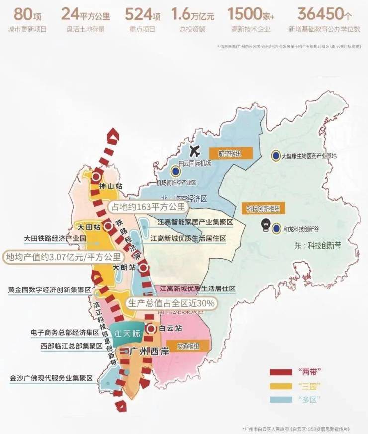 广州市十四五规划纲要中“白云”二字被提及60次,位居广州中心五区榜首,计划建设投资总额达到佛山与东莞准一线城市的水平。