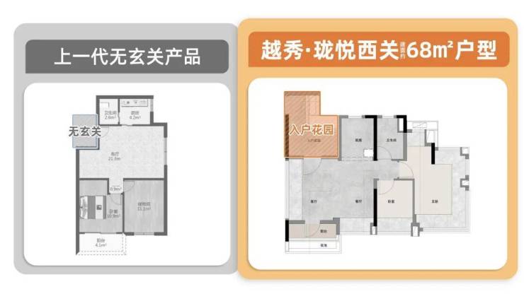 以往68㎡只能做一房或紧凑两房,越秀·珑悦西关直接三房两卫,总价大差不差,功能翻倍,土著原地升级。