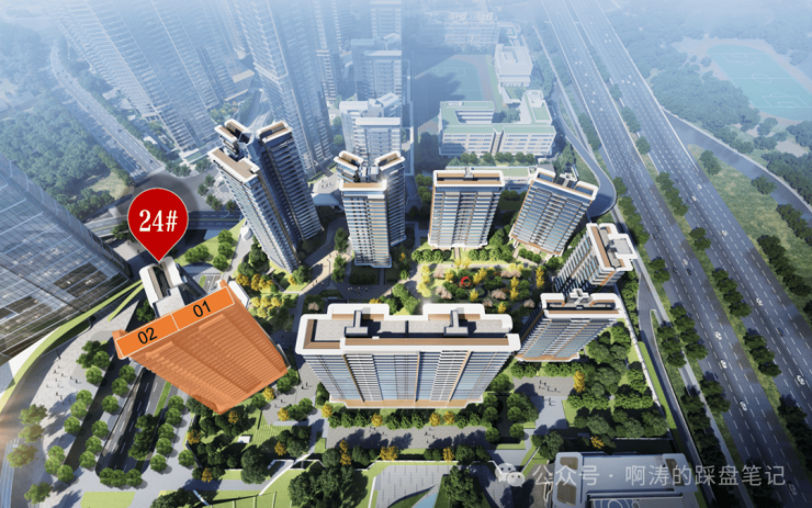 琶洲南二期围合式布局打造,8栋低密小高层,全南向排布。24#坐北朝南,3梯3户设计;