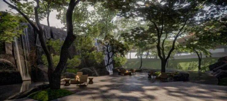 同时隔开了周边噪音,保证小区私密性和尊贵感,增加了景观层次。而抬高的空间更没浪费,这里将打造一个船舷花园,林泉、瀑布、溪流、花木等穿插其中,造型别致,相当于一座立体都市秘境。