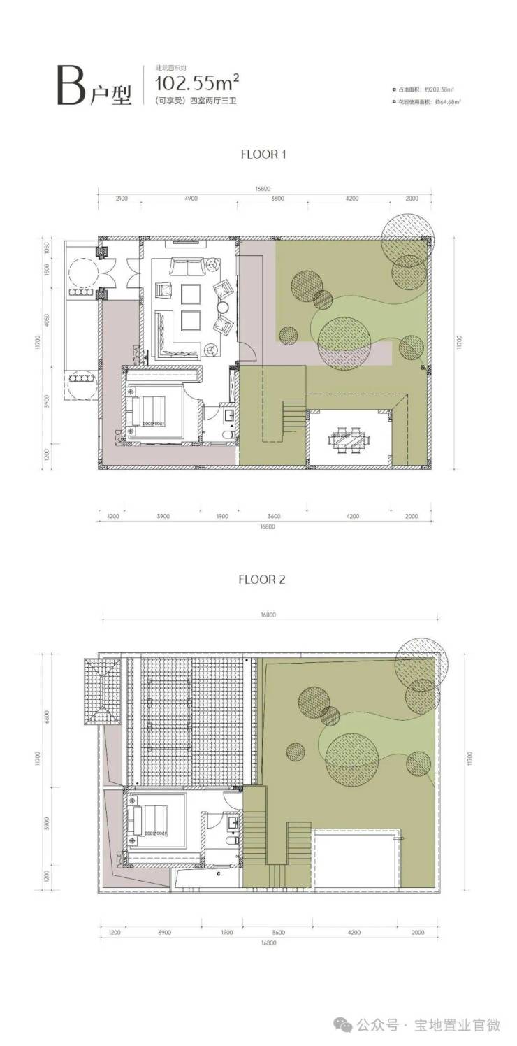 •花园使用面积约:64.68㎡