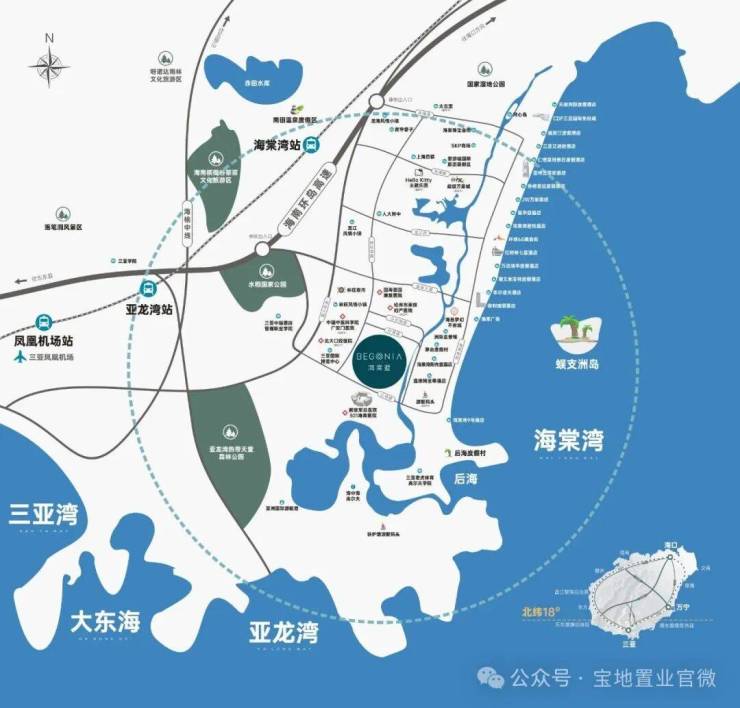 位居北纬18°黄金度假带,堪比马尔代夫、夏威夷、巴厘岛等颐养度假胜地,海岸线22公里,平均气温25℃,全年日照降雨适中,是海南岛中当之无愧的珍宝之湾。