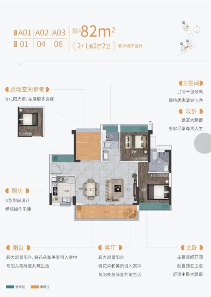 N+1全能户型,灵动空间设计,满足生活更多想象;