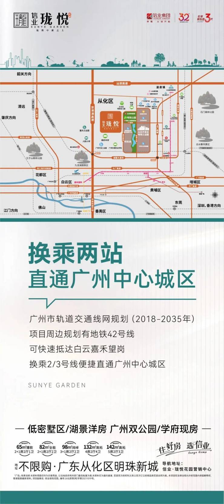 42号线距离项目不足一公里。建成通车后,地铁通行三十分钟直通广州主城。