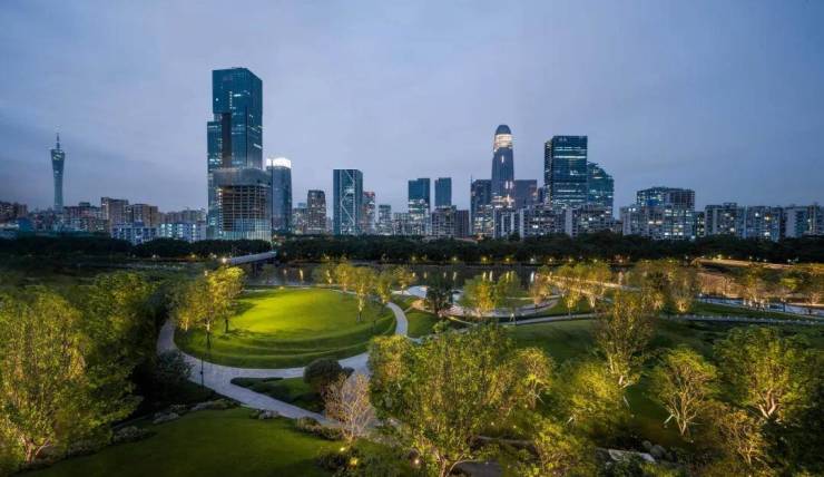 为破解城市核心区“繁华与静谧”的悖论,项目在交付区园内全冠移植了400多棵乔木,精心构筑起“都市溪谷”景观;而移目花园之外,广州母亲河珠江之水被“引入”园区,衍生出超2万平方米的滨水公园,形成CBD稀缺的亲水驳岸布局,让业主既能推窗尽享绿意盎然,又可便捷地前往国际滨水生活区享受繁华的静谧。这种“缝合城市”的实践,正如建筑大师简•雅各布斯所言:“真正的城市活力,源于功能的混合与步行的愉悦。”