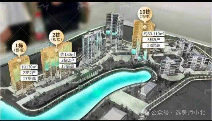 梯户比:2T2板楼(17F)建面约130㎡,塔楼(23F)建面约80-110㎡