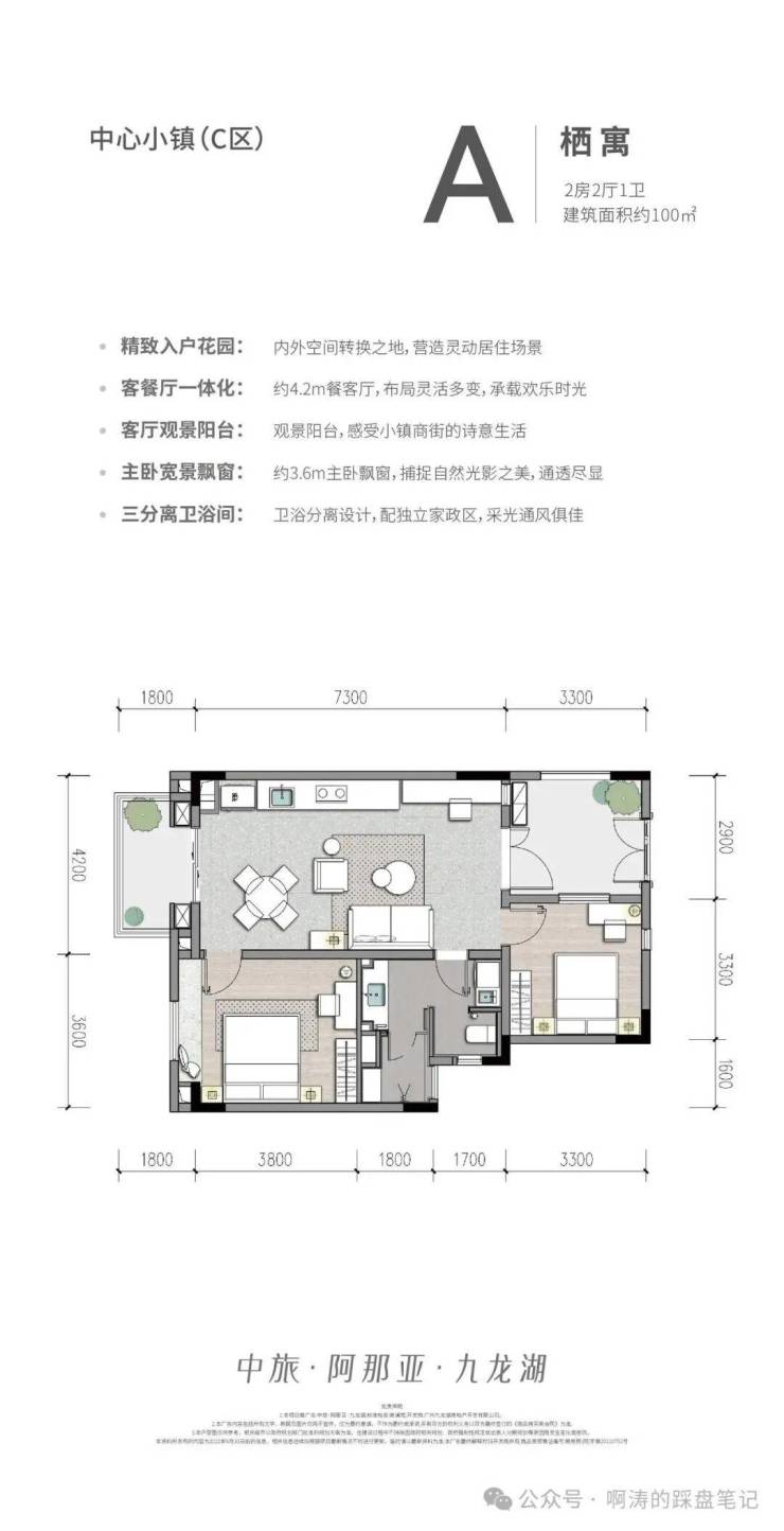 ✮产品面积:公寓A户型-100方(2房2厅1卫)