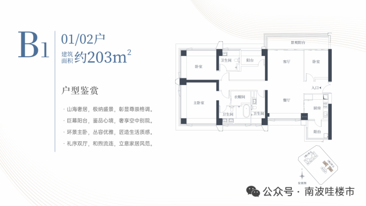 匠筑建面约124-203㎡全生命周期天幕户型,360°采光通风,270°环景主卧,山海日常推窗可得。背山面海,藏风聚气,家宅福泽之地。