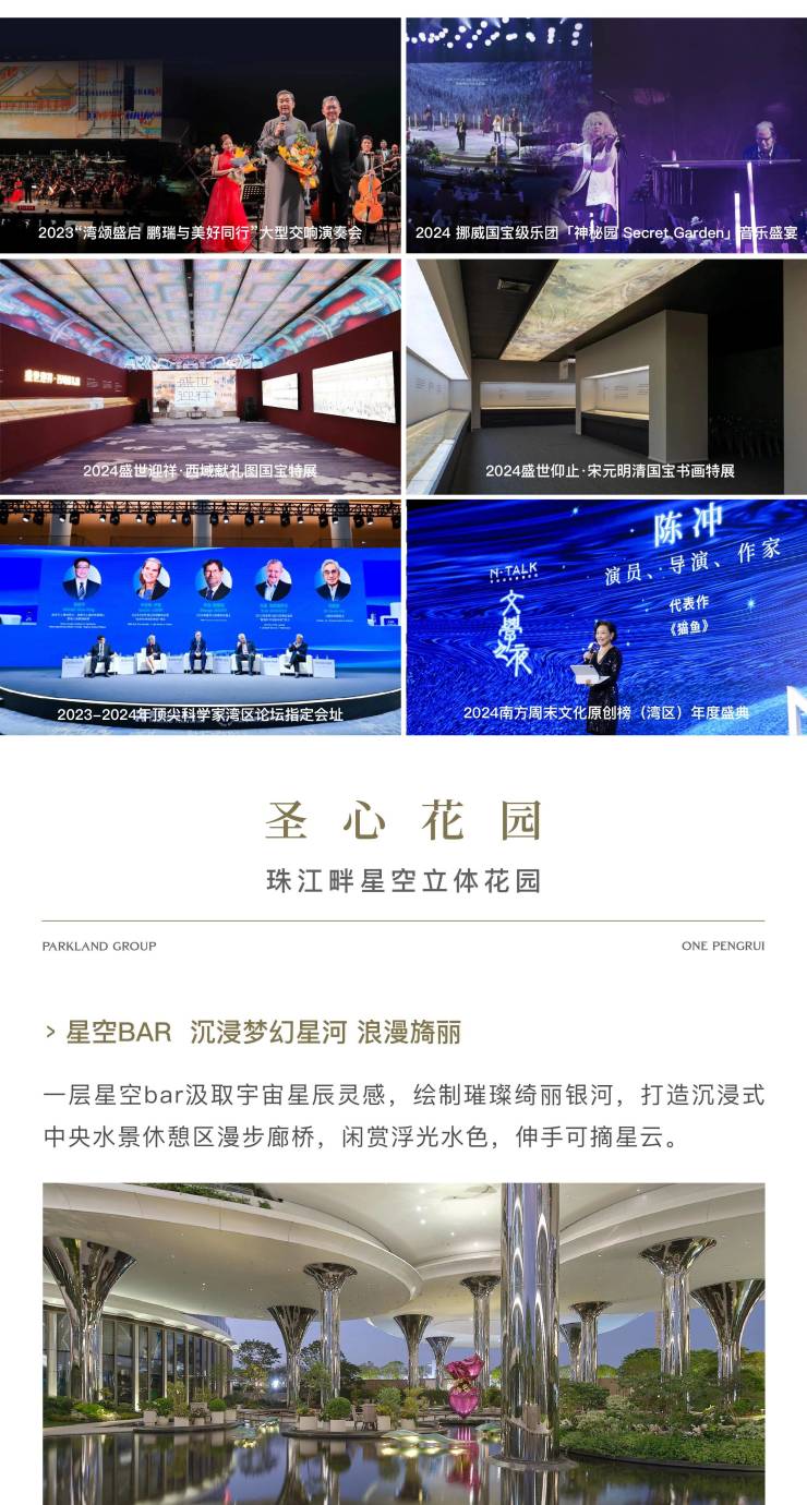 艺术地标:湾颂・艺术中心可举办顶级演出、展览及专业赛事,曾展陈价值 5.129 亿元的吴彬《十面灵璧图》,永久收藏杰夫・昆斯《圣心》雕塑。