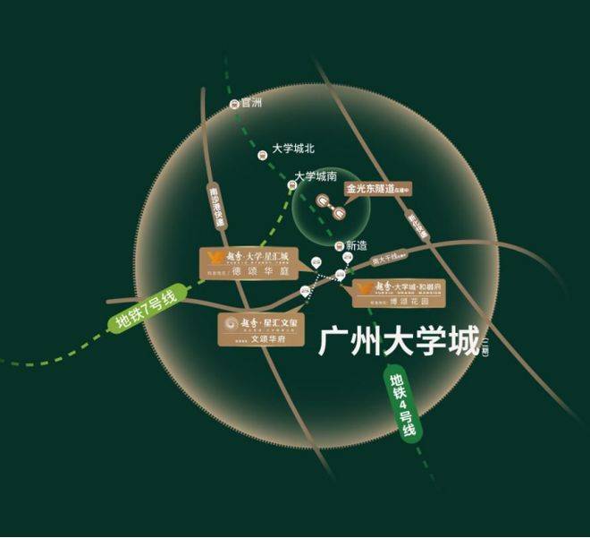位于“南中国硅谷”大学城二期板块,广深科技走廊×科创中轴唯一交汇点;大学城一期单价超 7.5 万,2.0 再造板块标杆大盘-越秀大学星汇城