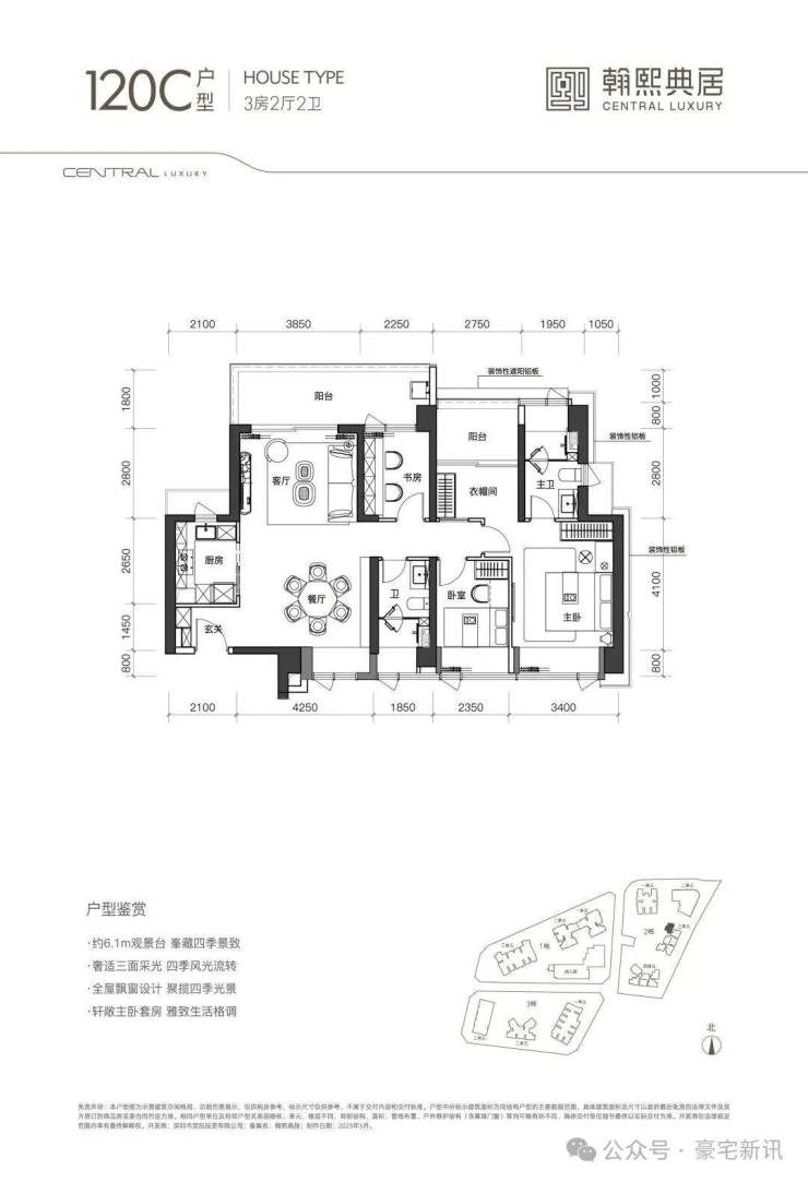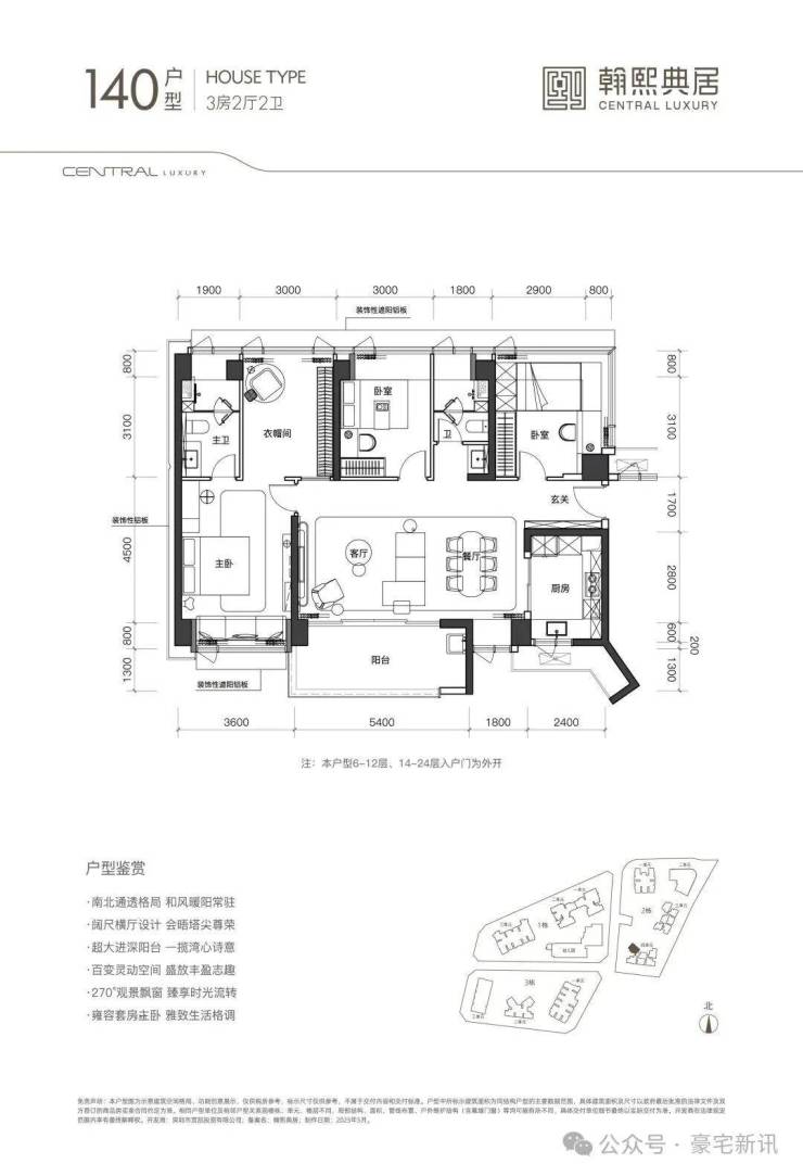 奢阔空间丨中心极境 礼献粤海 翰熙典居,粤海十年之后再上新,全新奢居综合体礼献峯层。可售主力户型新规后建面约105-140㎡奢雅空间,全明方正户型将空间奢阔感与生活舒适度完美契合。明星户型超6米阳台开间,全维度巨幕景观视野,尽揽湾心万千风景。