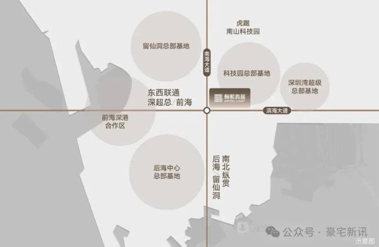 贵脉源点丨全维中心的奢居地标 翰熙典居占位深圳经济命脉滨海大道与南北科创主轴南海大道交汇处十字轴心。集萃城市区位、科创、人文、TOD四大中心源点。依托两大科技园、四大总部基地,集总部经济+全球科创中心价值,坐享区域发展利好。