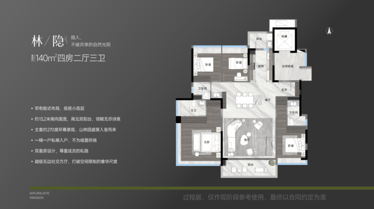 户型面积:140㎡/190㎡四房,250㎡4+1房