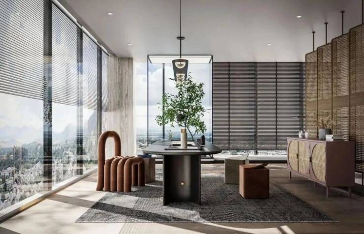 依山揽水,奢阔明亮的绿色生态大平层,270度观景,轻松兼具商务、社交、娱乐、接待、居住等功能。