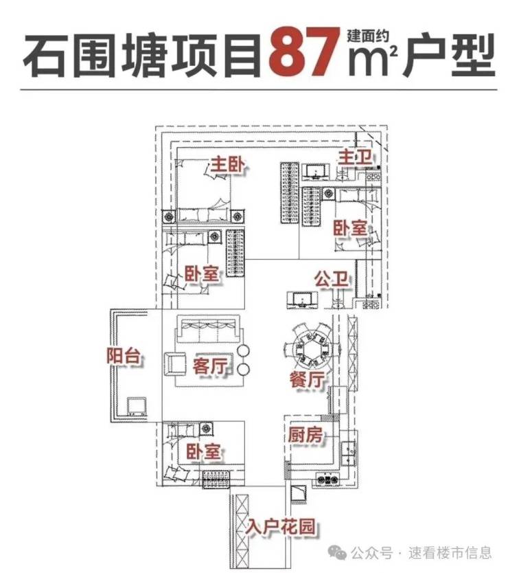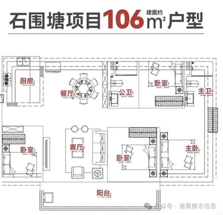 项目户型将主打建面约73㎡三房、87㎡四房以及106㎡四房。精准切中当前市场对“小而精”产品的强烈需求。