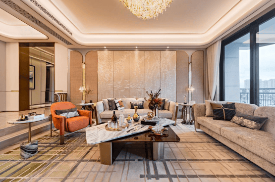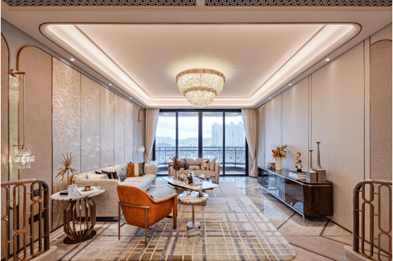 首创时尚驼色哑金风,南望江北望园,气派三厅设计(客厅、过厅、餐厅),江景园林双重环绕。