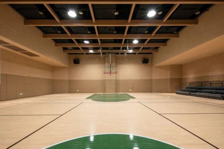 同频国际的专业赛级主场:约7米层高全明篮球场,上方以粗犷夯土漆勾勒出峡谷般的原始意境,下方则铺设专业运动护墙板与木地板,静谧中守护每一次跃动,演绎力量与美学的共鸣。