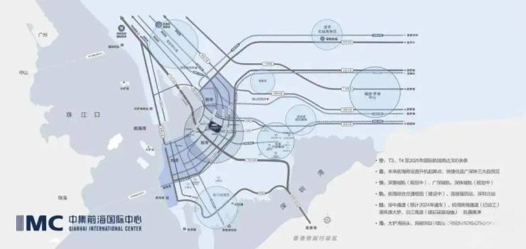 前海规划“9+2+1”海陆空立体交通构架,便捷深港往来、加速粤港澳大湾区互联互通,执掌全球商务效率,高效联结全球商务资源,无缝衔接全球财富版图。