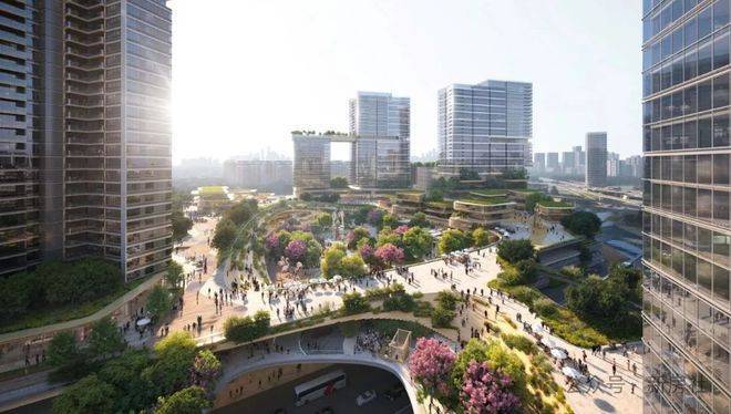 站在中轴绿廊中,琶洲CBD天际线近在咫尺,你可以清楚地看到耸立的阿里华南总部与唯品会总部。未来这条中轴绿廊,将一路延伸至滨水公园,串联起琶洲西区、地铁、一二期住宅、公园、会所、艺术中心、和商业空间,自此形成「居住-办公-消费」的「三角价值」闭环生态。