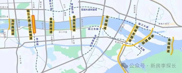 政府规划8条过江隧道,目前已建成车陂南隧道,项目东边的会展西隧道预计明年2026年通车