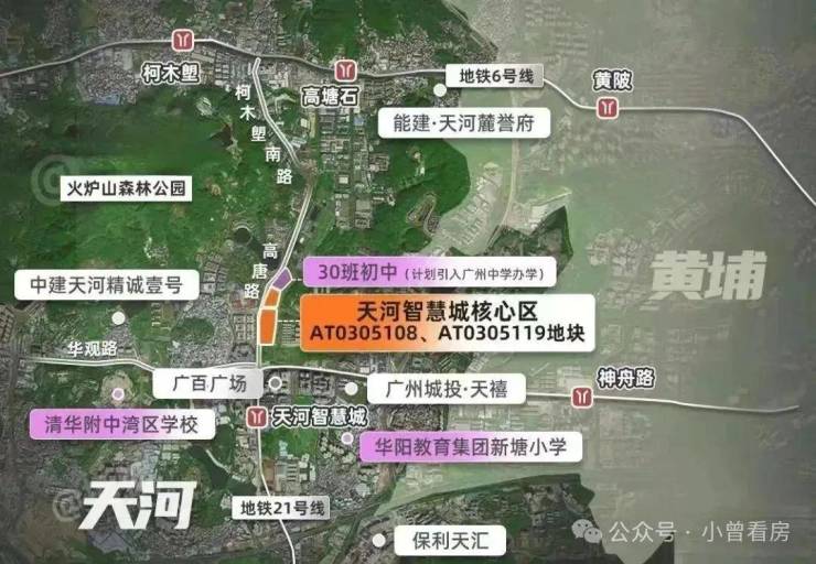 5,AT0305119地块将配建一所幼儿园,小学学位由华阳教育集团新塘小学统筹解决,北侧的AT0305237地块规划一所30班初中,计划引进广州中学品牌开办。