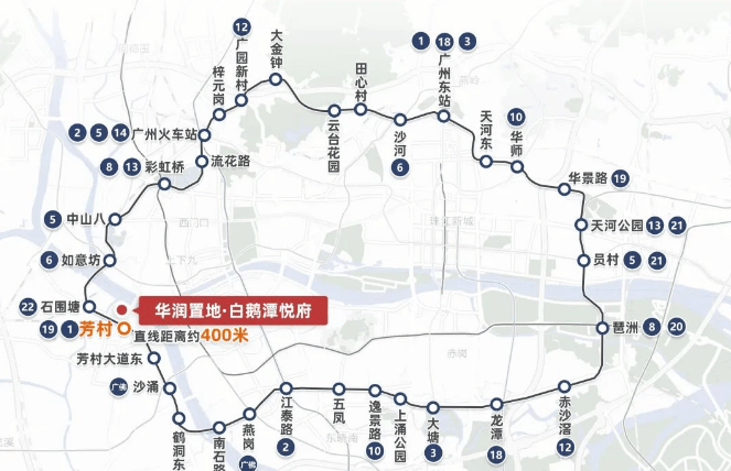 项目距离1号线白鹅潭TOD(芳村站)约400米,未来将有4条地铁交汇,包括1号线、11号线、22号线和28号线。