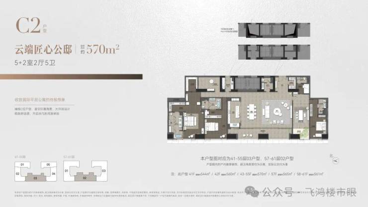 ◎建面约570㎡ 5+2室2厅5卫 云端匠心公邸