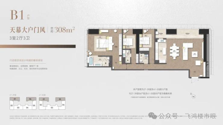 ◎建面约308㎡ 3室2厅3卫 天幕大户门风
