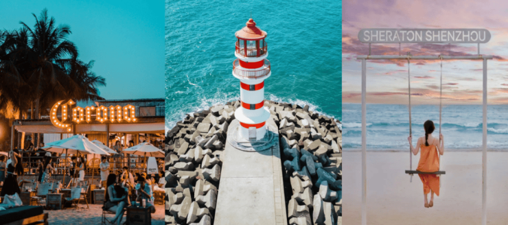 网红灯塔/海上秋千/行宿物语露营基地/ DEDECO酒吧/科罗娜落日酒吧/阿卡迪亚餐吧等