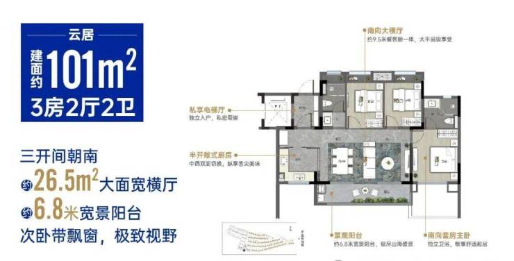 约82㎡星空露台,尽揽一线果岭风光;百变空间,解锁更多生活可能