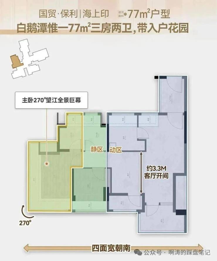 77㎡ 3房2卫: 片区唯一的80平内带入户花园+2卫的设计!