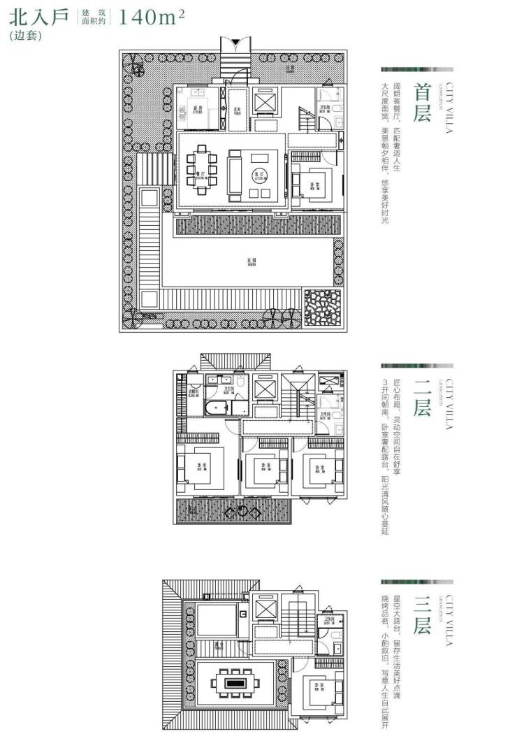 约90-160㎡前后花园,前庭养花,后院种树,点缀些许生活情趣,斟一壶茗茶,读一本闲书,邀几位好友小聚,午后时光亦会因此变得美好而缓慢。