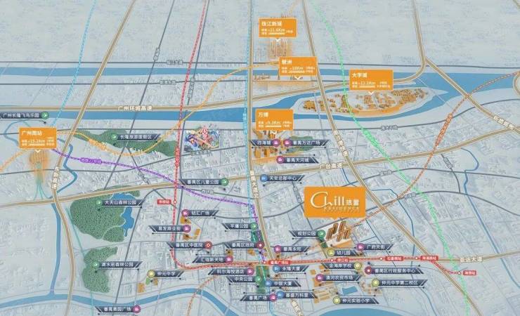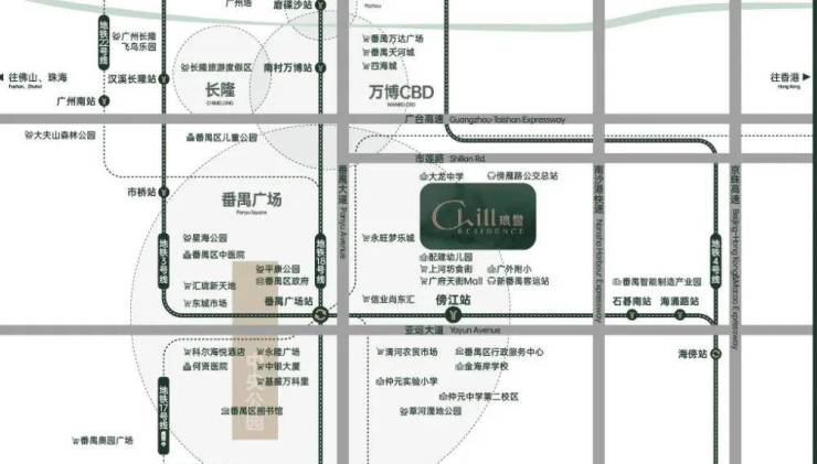 一站即达番禺广场站,里面有地铁3号线、18号线、22号线、3号线东延段、17号线(规划中)五轨交汇,一站畅行琶洲,两站通勤珠江新城。