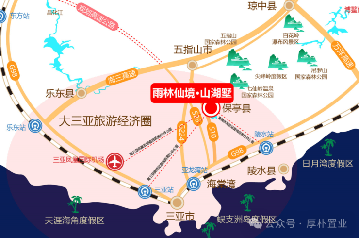 项目地处保亭,大三亚1小时生活经济圈内;
