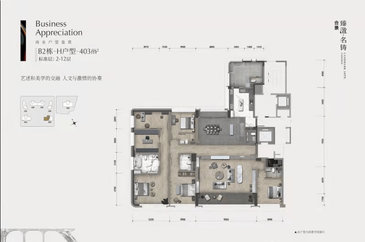 合景臻溋·名铸位于天河金融城,项目占地约 3.1 万平,总建面约 9.9 万平。由 4 栋住宅(24 层高)和 3 栋商业楼(B1、B2 栋 13 层高且首层架空,B3 栋 28 层高)以及 1 处文化室(1 层)构成,是难得的南向望江豪宅。这里不仅有图书馆、现代艺术馆、艺术画廊等广州首创的艺术配套,还有装修富丽堂皇的私人影院,尽显尊贵。
