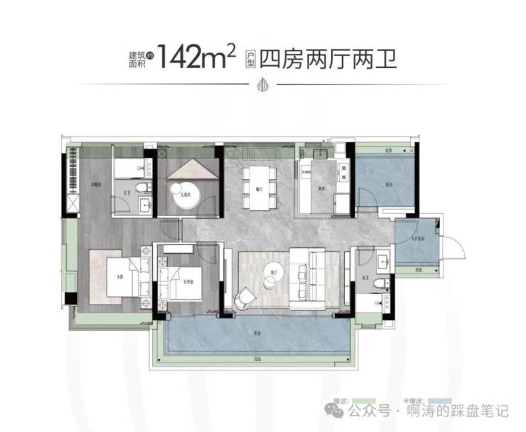 【户型面积】建面约125-142㎡四房两厅两卫/214-319㎡大平层