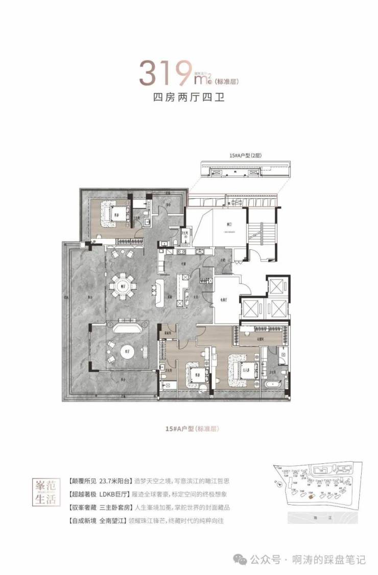 白云首个珠江大平层,125-142㎡南向江景4房,214-319㎡大平层,超高使用率,江景豪宅,市场罕有