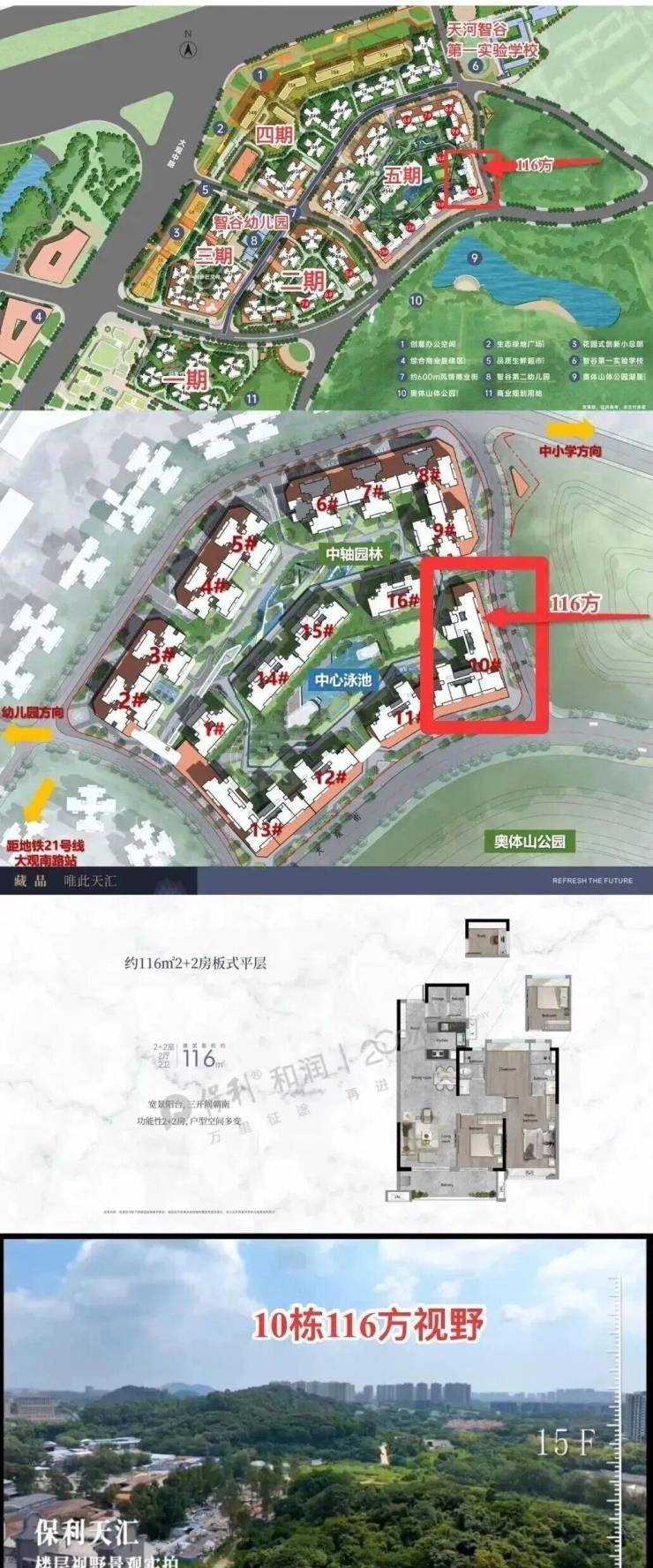 保利天汇新的组团,也是整个项目的规模最大的楼王组团。由16栋纯住宅组成,没有公寓和商业,居住属性更纯粹。新组团背靠奥体山林公园,拥有内外一线双园林,最具自然资源,舒适度最高