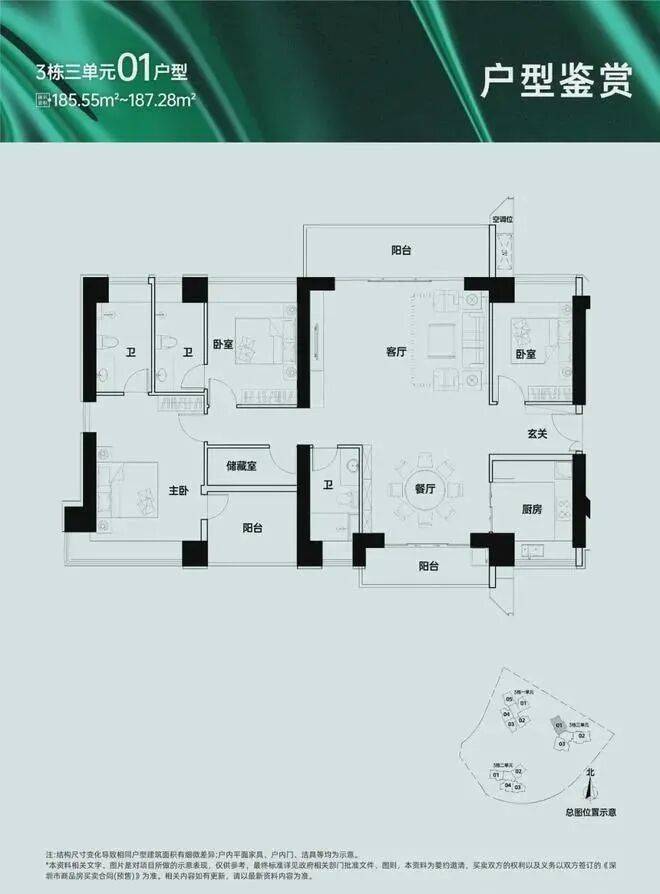 B区由3栋三个单元及裙房组成,其中一二单元层数45层,三单元层数39层,总户数474套,套内面积小于90㎡的有369套,占比77.85%,均为商品住宅。