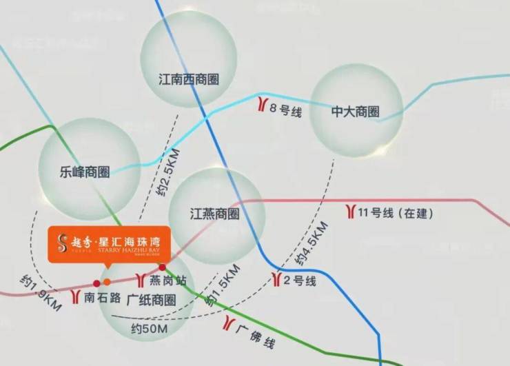 项目位于广州五大主城区之一的海珠区,现成地铁广佛线燕岗站附近;海珠创新湾头部发展区域,广纸新城核心腹地,坐拥千年羊城繁华,未来创新湾将承接广州城央高净值人群的消费、娱乐、居住等需求,是广州全市风水最旺处,为云山环抱处,和珠水汇聚。广纸所在片区为“玉带环腰水”格局,居者非贵则富,多主事业成功、财运亨通,赚钱比较容易,且能积聚至富。
