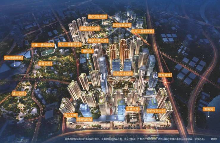 从项目生态的微观角度看,超40万㎡观城壹方,再造 “壹方天地2.0”商业综合体;约3.6km空中漫步道、5大公园、片区规划8所学校(其中有一所是华丰地块)构成的“生活圈”,与产业集群形成的“就业圈”无缝衔接,让资产保值增值有了坚实支撑。