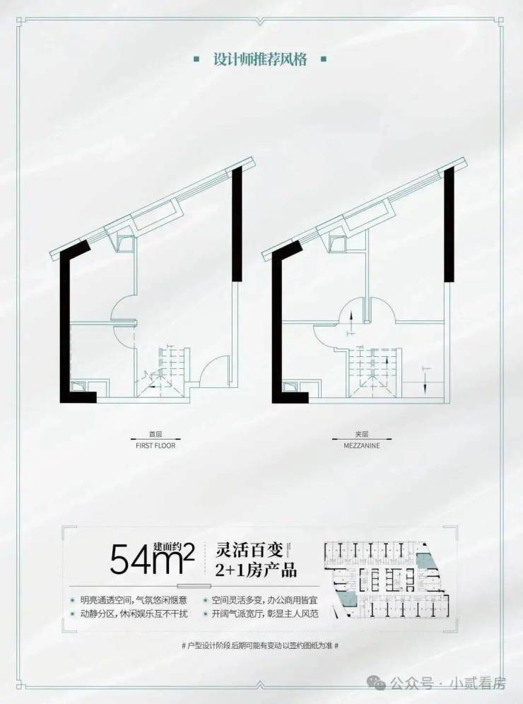 建面约54㎡高赠送2房(可明火)