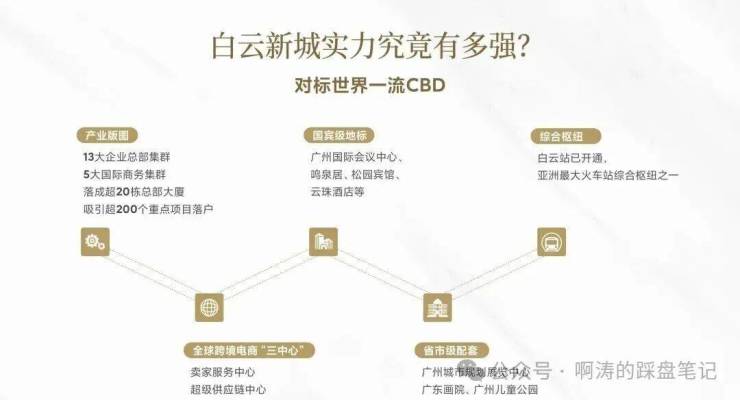 广州新一代CBD白云新城CBD,定位为国际交往中心、总部经济集聚区和云山西麓宜居新城,突破了传统CBD单一产业功能的局限,成为粤港澳大湾区唯一集空港经济、跨境贸易、科技创新、总部集聚于一体的综合性经济中枢。