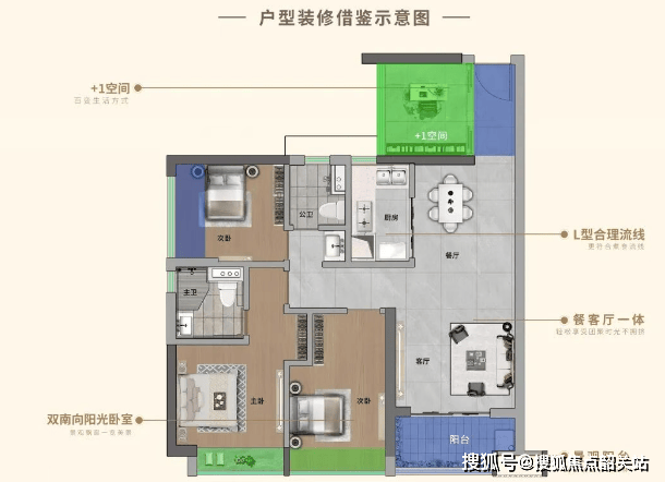 70㎡ 园景三房:紧凑实用,适合小家庭居住。