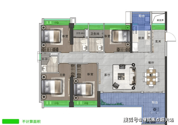 82㎡ 爆款四房:空间利用率高,能满足一般家庭需求。