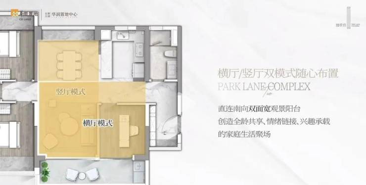 不仅南北对流通透,而且南向采光面去到约15.2米,这基本在140㎡+户型才会有的尺度。