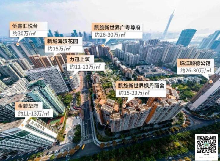 在广州,与江的距离不同,物业价值差距明显。以珠城为例,一线临江的汇悦台、广粤尊府,单价26~30万/㎡,靠后面的力迅上筑、金碧华府等项目,单价11-21万/㎡。一线与二线,实际距离并不远,之间却有着10万+/㎡的价差。