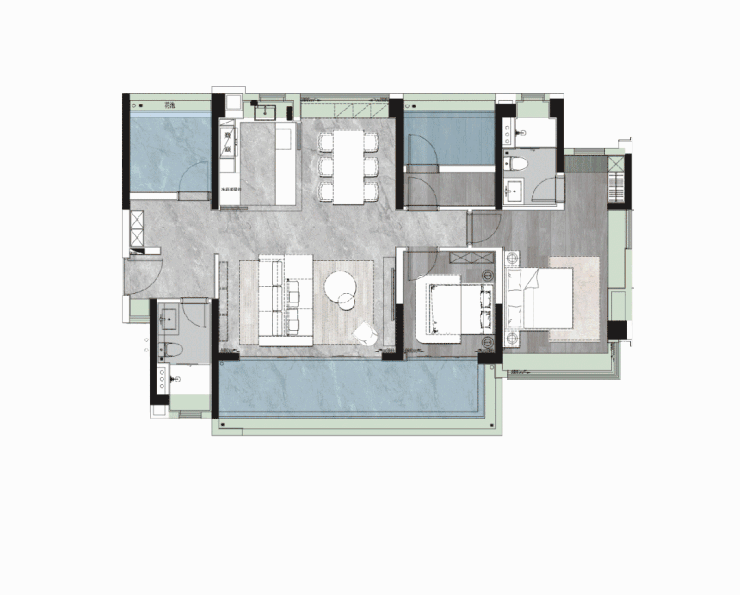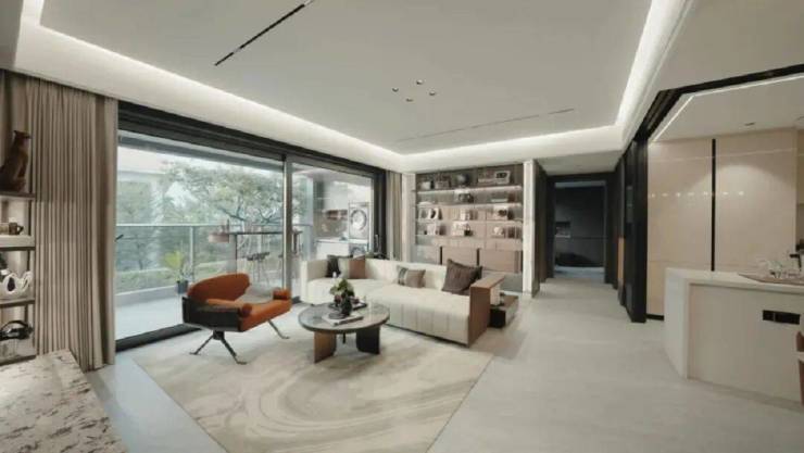 以约142㎡四房为例,南向江景阳台面宽接近9米、进深2.2米。面积足足有约20㎡,相当于别人家的主卧,分外气派。