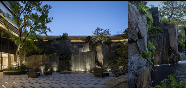 【设计理念】景观的朱弘博大师根据“城市山林”的空间意向,提出“外得江湖,内得山水”的设计理念,寓意一种山中有城、城中有山的意境,将山水园林的古典美学与现代都市生活完美融合。