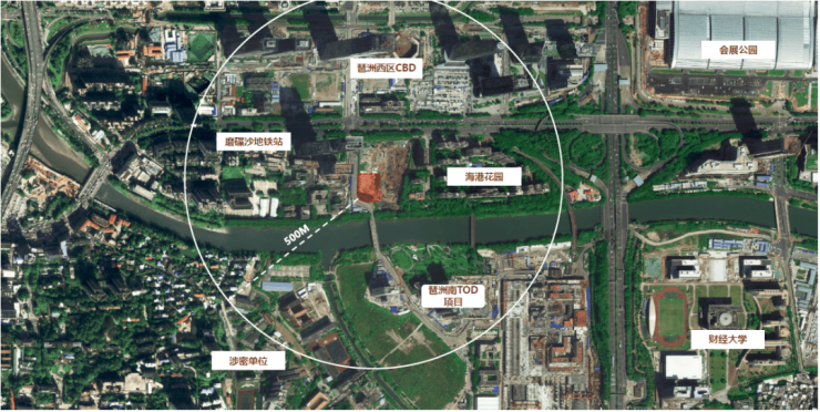 项目位于琶洲CBD核心,是越秀大琶洲战略中的又一重要落子,也是广州土拍历史单价地王。本案毗邻琶洲樾,北邻新港东路,南望黄埔涌,西接邦华环球贸易中心,与北侧琶洲西总部集群遥相呼应,与越秀琶洲南TOD项目隔江相望。